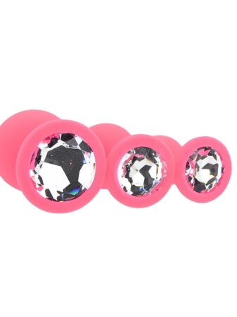 Home » Shop » Sex Toys » Anal Sex Toys » Butt Plugs » Toosh Silicone Butt Plug Pink Set of 3 Clear Stone