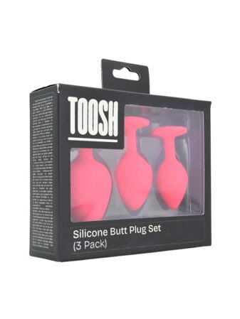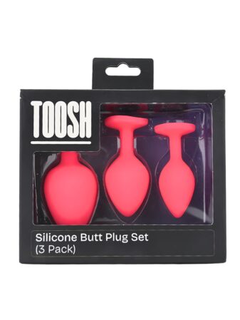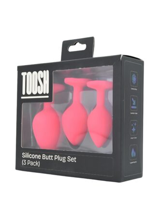 Upgrade your anal play with this Toosh butt plug set! Featuring three sizes for comfort and progression, each plug has a tapered tip, slim neck and flared base for safety.