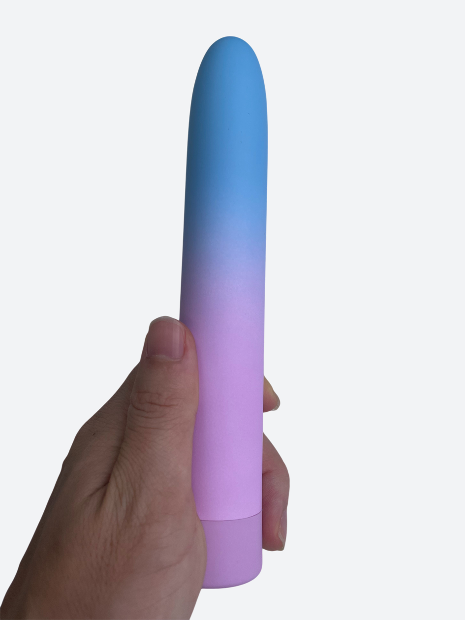 Finished in a striking gradient design — fading from blue at the tip to pink at the base — this toy is as stylish as it is satisfying.