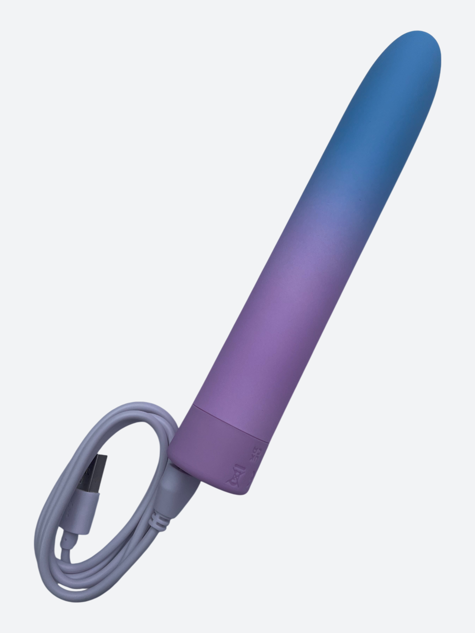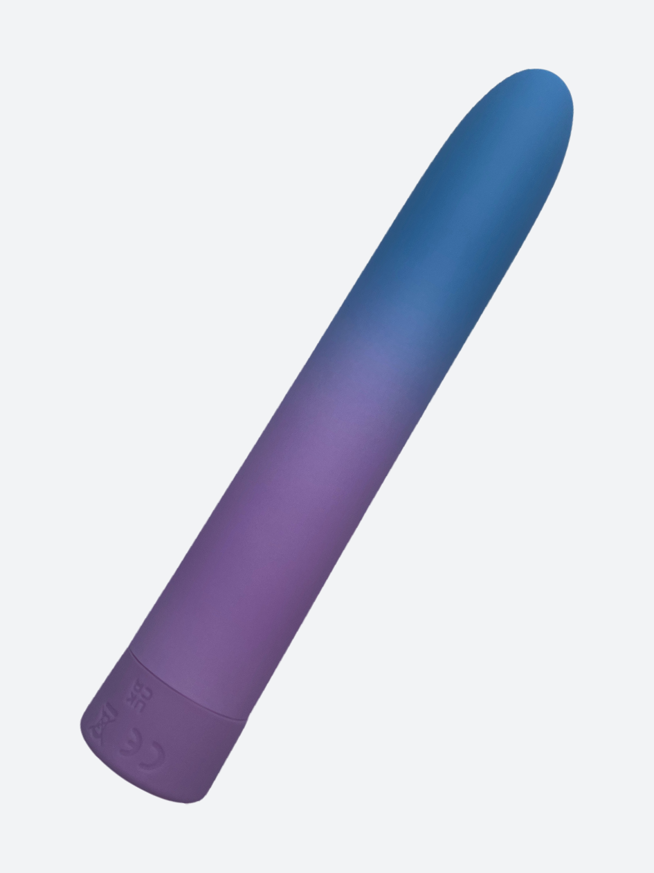 Classic bullet vibrator with 12 vibration settings, USB rechargeable, body-safe silicone, and splash-proof design. Finished in gradient blue.