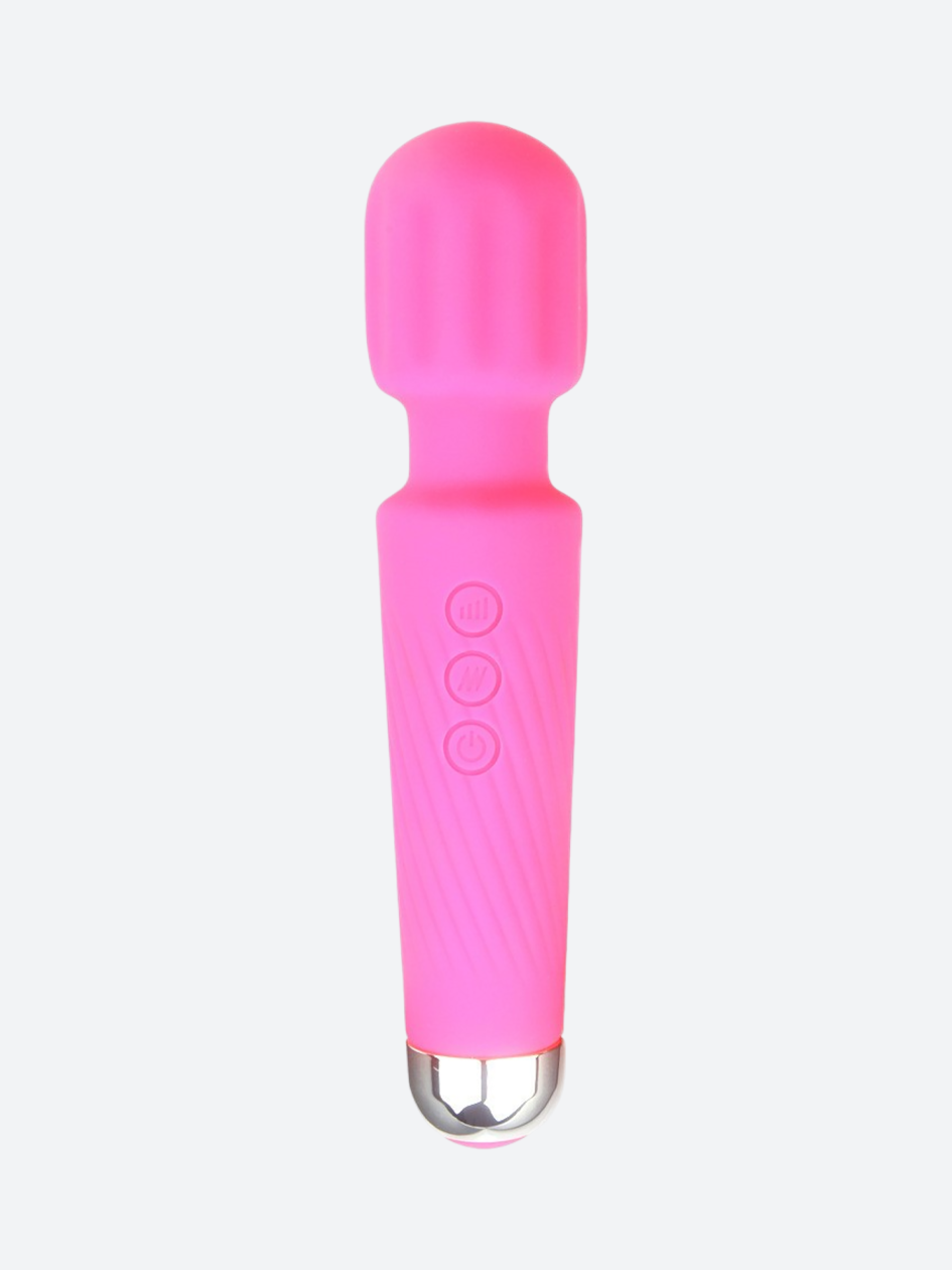 Powerful Magic Wand Vibrator with 20 vibration modes, USB rechargeable, waterproof, and available in multiple colours.